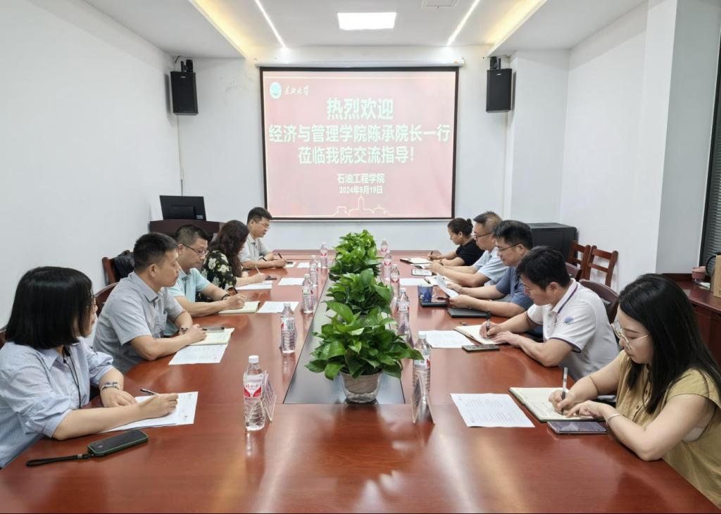 陈承院长介绍了欧博abg官网登录入口的发展历程和现状,以及学院立足国家能源战略和石油企业高质量发展,开展有组织的科研和社会服务的基础、特色和未来方向,并详细阐明了学院通过实施“经管+”战略助推学校双一流建设的现实意义和初步设想。他表示,通过此次调研,深入学习和了解了石油工程学院在治理体系建设、学科专业建设、师资队伍建设、人才培养等方面的先进经验,为欧博abg官网登录入口全面深化改革提供了很好的经验借鉴。之后,双方围绕“如何实施有组织的学科专业交叉融合”进行了深入交流。