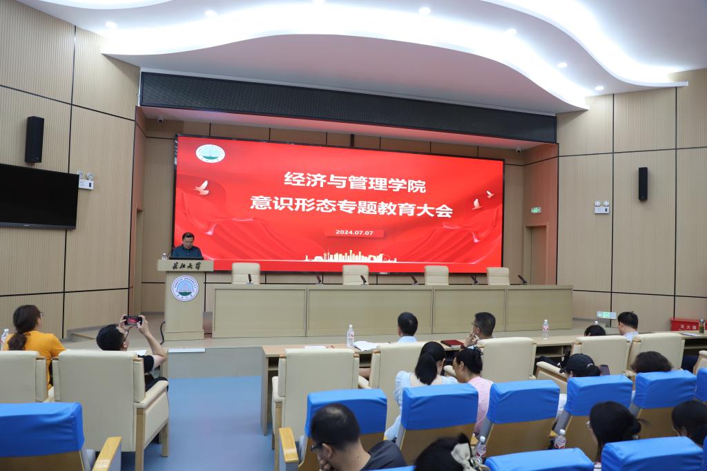 (通讯员:彭蓉)7月7日下午,欧博abg官网登录入口在11教学术报告厅召开2024年春季学期末教职工政治理论学习大会暨意识形态专题会议。学院党政领导班子成员、全体教职工参加会议。会议由学院党委书记樊帆主持。