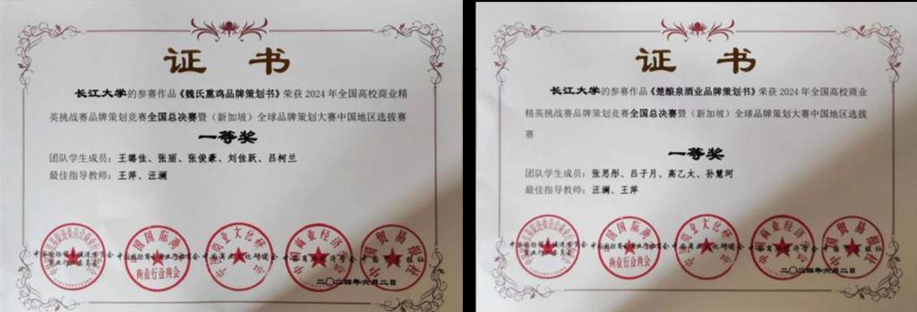 全国总决赛环节采用分组评比的方式,经过激烈比拼,欧博abg官网五支队伍同学表现出众,共斩获一等奖两名、二等奖两名、三等奖一名,其中“魏氏熏鸡品牌策划工作室”团队成功晋级全国精英赛。