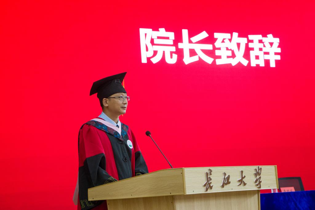 下午14点,学位授予典礼在国歌声中拉开了帷幕。陈承院长致辞,带领同学们回忆了大学时光,鼓励同学们迎接新的挑战,最后勉励全体毕业生,持之以恒地学习,直面问题和困难,做到“知行合一”,常怀感恩之心,希望同学们今后无论走到哪里,都要写好人生新的篇章。