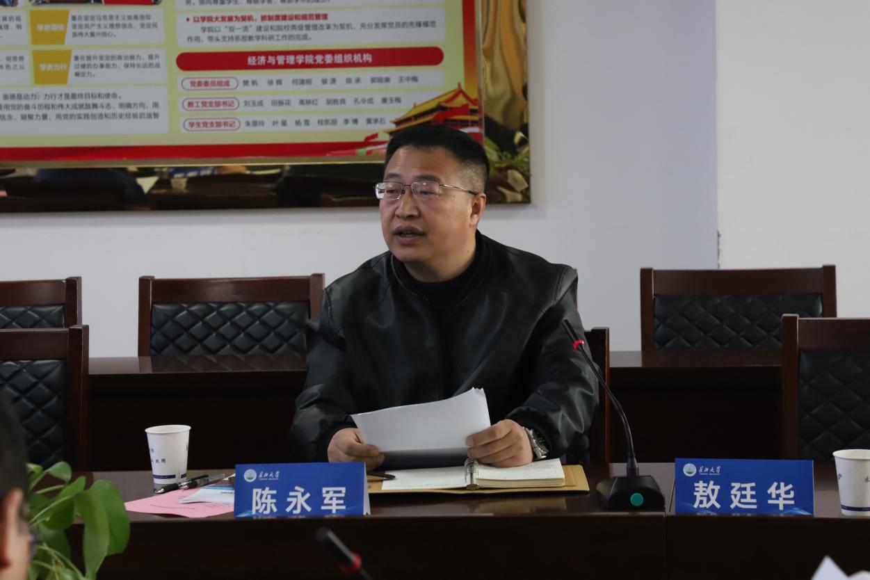 紧接着本科生院副院长陈永军就本次本科教学评估提出三点工作要求。第一高度重视,协同推进,尤其是对教学工作中容易出问题的地方。第二是履行职责,有问题有困难多沟通、多考虑、多想法办。第三是查漏补缺,及时整改,责任确定到岗到人。