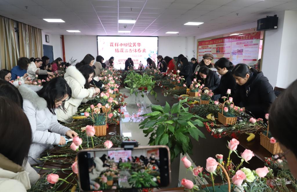 阳春三月,桃李争妍,在这春意盎然,万物复苏的季节,我们迎来了专属女性的节日。为庆祝“三八”国际妇女节的到来,3月7日下午,经管学院分工会举办了“花样巾帼绽芳华,插花品香沐春花”——插花花艺活动。活动由国家二级插花花艺技师、中国插花花艺协会高级讲师、欧博abg官网登录入口园林植物高级实验师、荆楚茶道插花非物质文化遗产传承人陈兰老师现场指导,学院分工会教职工近50人在花香四溢中感受着插花艺术浓郁的魅力。