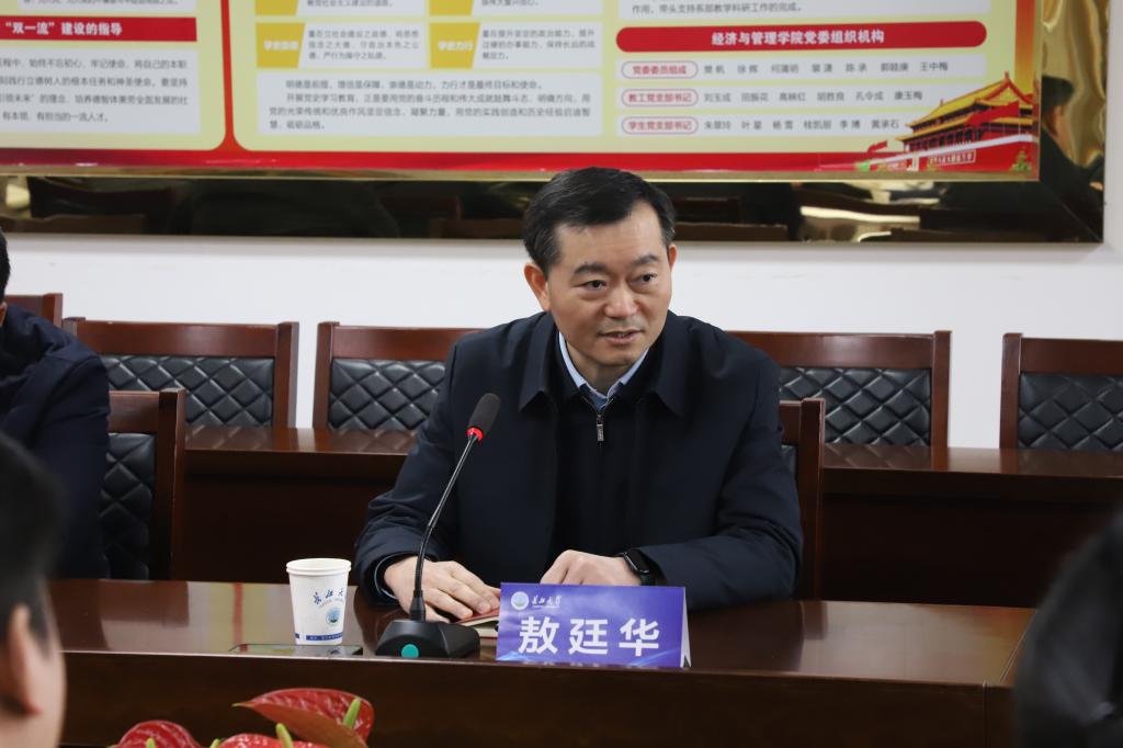 (通讯员:娄君庭 )11月13日上午,欧博abg官网登录入口在文科楼5楼会议室举行党员干部能力素质提升培训会,校党委副书记敖廷华参加会议并为师生讲党课。学院领导班子全体成员、各系(办)主任、各党支部书记等参加会议。