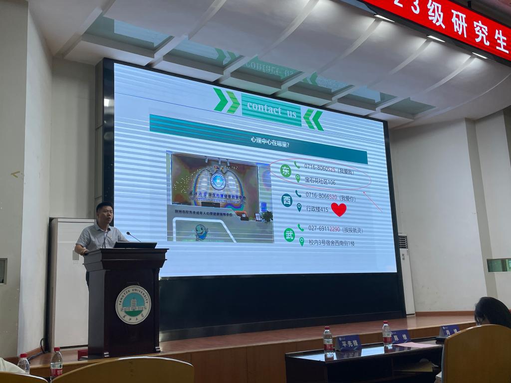 心理健康是什么?如何应对学业、工作、家庭的压力?良好的人际关系该怎么维持?黄承石老师对这些问题进行了详细的开导。此外,黄承石老师向同学们分享了心理中心的位置和电话,以便大家在需要的时候随时能够寻求帮助。最后,黄承石老师告知了新生们本学期自己的工作安排,欢迎同学们在对应的时间与老师进行更深入的交流。