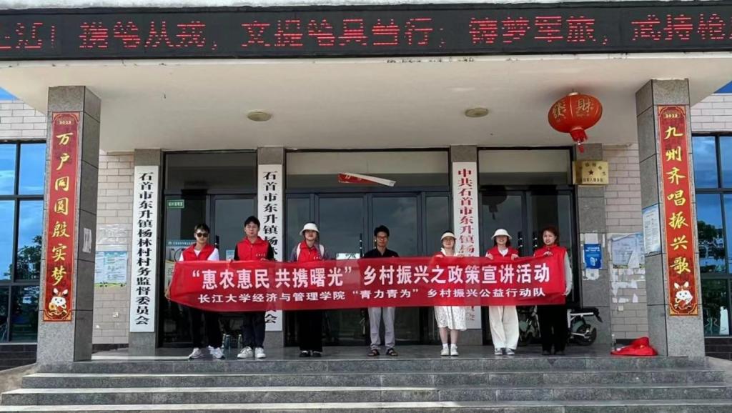 (通讯员:洪炎阳 张宇)为积极响应党和国家号召,以青春激情助力乡村振兴,欧博abg官网登录入口组织开展了以“惠农惠民,共携曙光”为主题的暑期“三下乡”社会实践活动。从6月26日开始,学院暑期社会实践队的志愿者们怀揣着对乡村振兴的热情,对农民生活情况的关心,前往石首市东升镇焦山河村、杨林村等地区进行实地调研,开展了以惠农惠民政策宣讲为主要内容的公益服务活动。