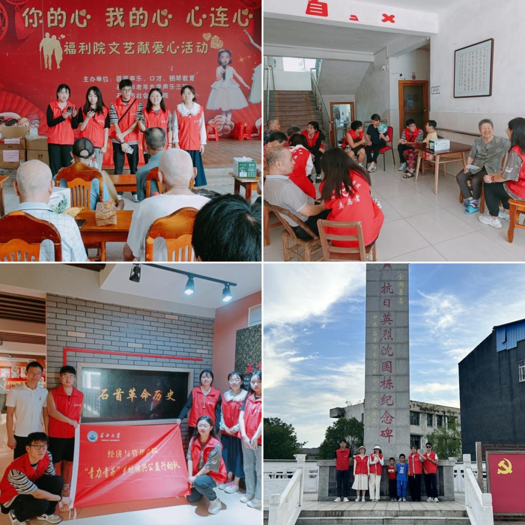 为了丰富暑期社会实践活动的形式和内涵,团队还到石首市相关地点开展了系列主题活动。7月2日,在指导老师的带领下,团队成员前往石首社会福利院开展“将温暖带给老人,将爱心传递你我”志愿服务活动,志愿者精心准备了歌曲演唱、朗诵等节目,给老人们送上了牛奶、面包、水果等爱心礼物,去到老人的房间帮忙收拾床铺,坐在老人身边一起聊聊家常,陪伴的时间虽然是短暂的,但志愿者们看到了老人们脸上连连露出的笑容,便也达到了活动开展的目的和意义。7月3日,团队成员分别到石首市博物馆和红色文化广场,深刻学习了解了石首革命文化历史,聆听了开国将军的感人事迹,接受红色文化熏陶,进一步感悟志愿服务精神。7月4日,团队成员走进欧博abg官网登录入口石首市乡村振兴研究院,在负责人的讲解和介绍下,更深层次地理解了国家的乡村振兴战略,也学习到了许多关于农业管理和农村发展的新知识,开拓了自身的学术视野。