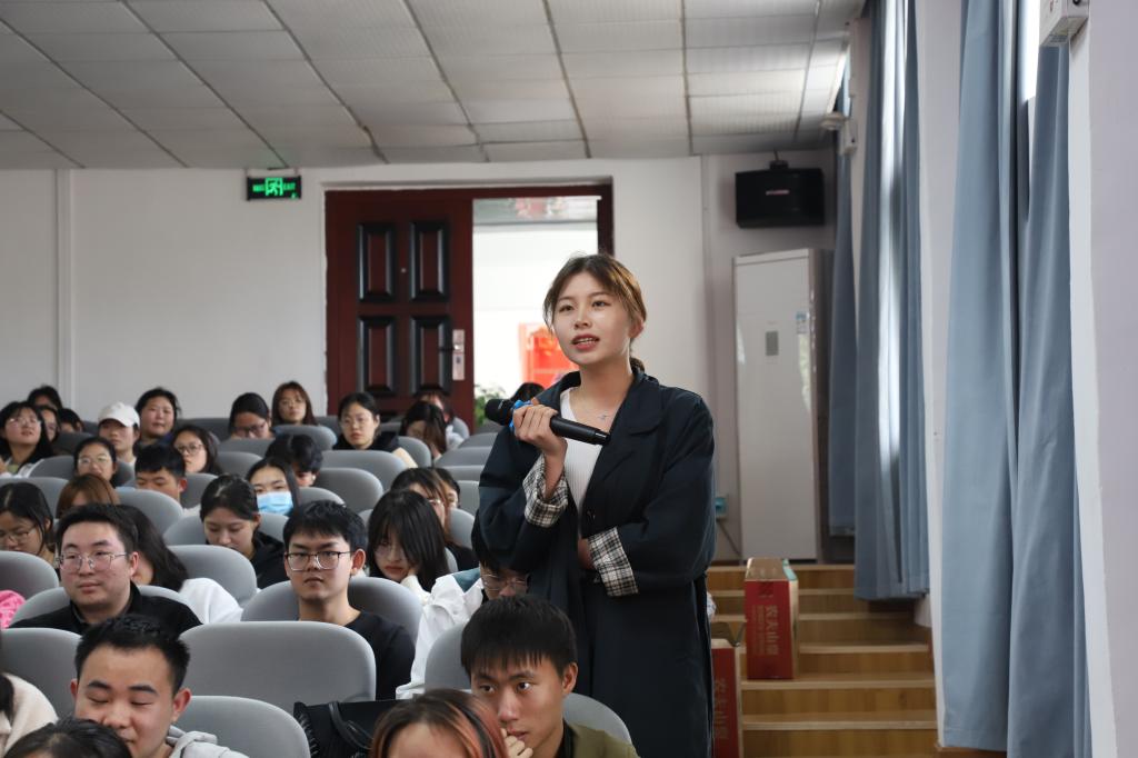 随后,小胡鸭有限责任公司董事长胡总受邀分享以“人因梦想而伟大”的励志成材演讲报告,胡总用自己从街边的小推车发展成现代企业的创业故事,强调了创业过程中所需要的勇气、毅力和创新精神,呼吁同学们要努力学习,在增强自己的本领中踏实追梦。在分享过程中,胡总和同学们积极互动,对同学们关于理想、关于择业、关于坚守等问题,结合自己的人生经历给出参考和建议,启发同学们思考自己未来的发展方向。