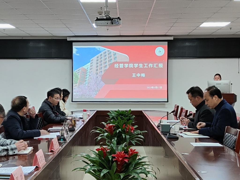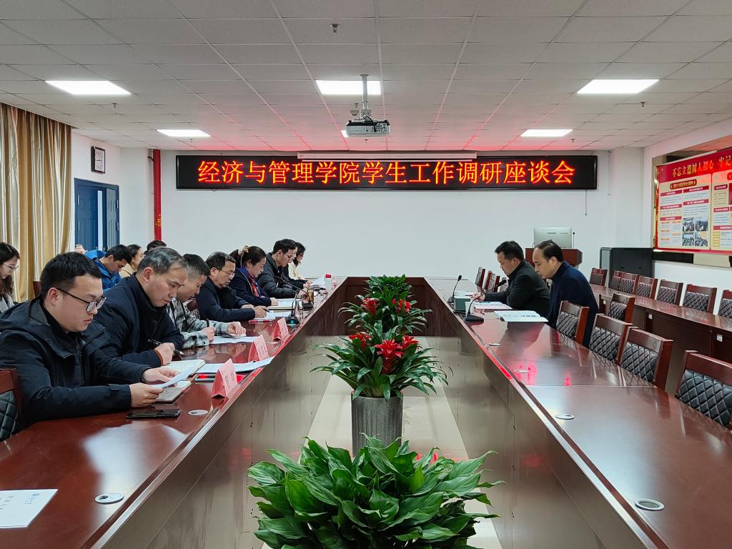(通讯员:李博)3月17日,校党委副书记、副校长杜国锋带领学生工作处副处长谢作喜到欧博abg官网开展学生工作专题调研。学院党委书记樊帆、党委副书记王中梅及全体辅导员参加调研座谈会。