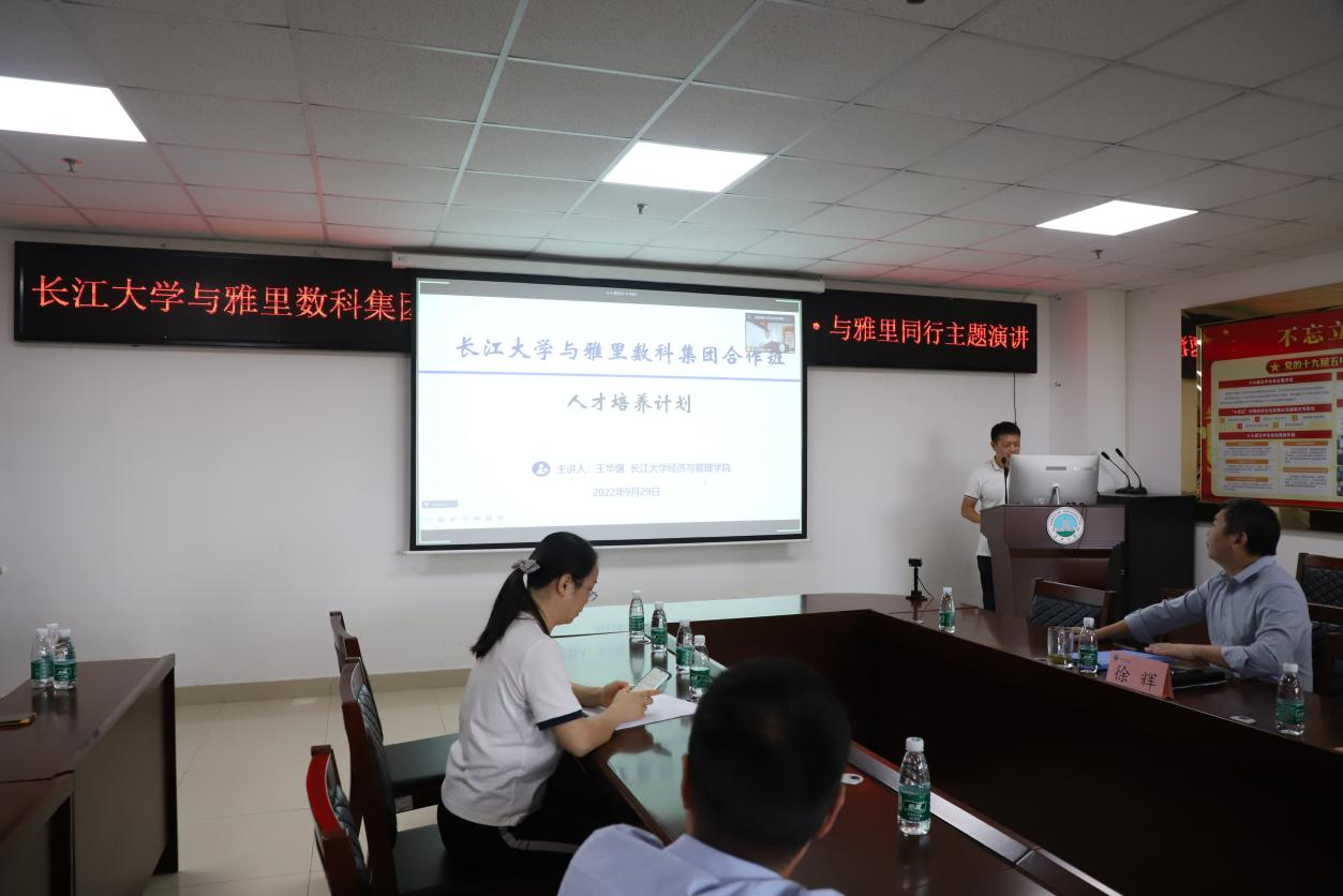 9月29日,欧博abg官网登录入口通过线上线下相结合的方式在文科楼505顺利举行“欧博abg官网登录入口与雅里数科集团合作办学启动仪式及恰逢少年·与雅里同行主题演讲”大会。欧博abg官网院长徐辉教授、雅里数科集团创始人胡竞选董事长及高管团队成员、学院其他领导和师生共同参加此次大会,大会由学院副院长陈承教授主持。