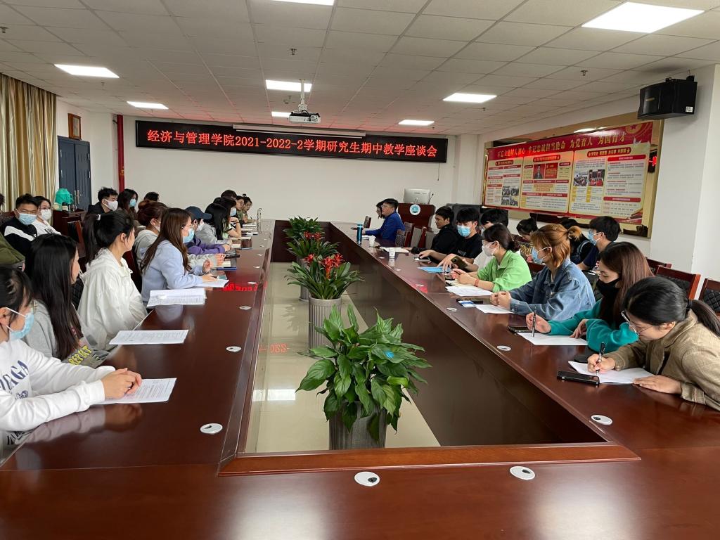2022年5月11日下午,欧博abg官网研究生管理团队(分管副院长裴潇教授,MBA教育中心李洪文主任,MPAcc教育中心叶云主任,研究生秘书谢老师、余老师、陈老师)与30余名研究生代表在文科楼505会议室举行了2021~2022学年第2学期期中教学座谈会。