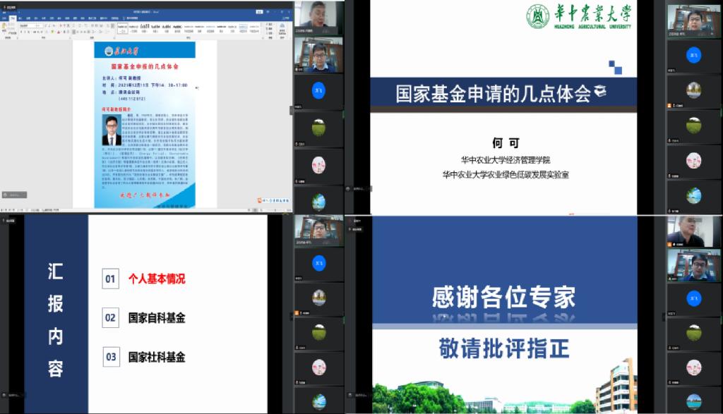 (通讯员:林龙飞)2021年12月11日下午2:30,欧博abg官网登录入口邀请华中农业大学何可副教授讲授国家基金申报经验与注意事项。 本次会议通过腾讯会议线上举行,近70位师生参加了会议。会议由副院长何蒲明教授主持。