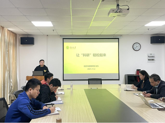 11月2日,欧博abg官网登录入口远航工作室举行辅导员讲坛第六讲。辅导员别凡以“让科研轻松起来”为题做交流分享。
