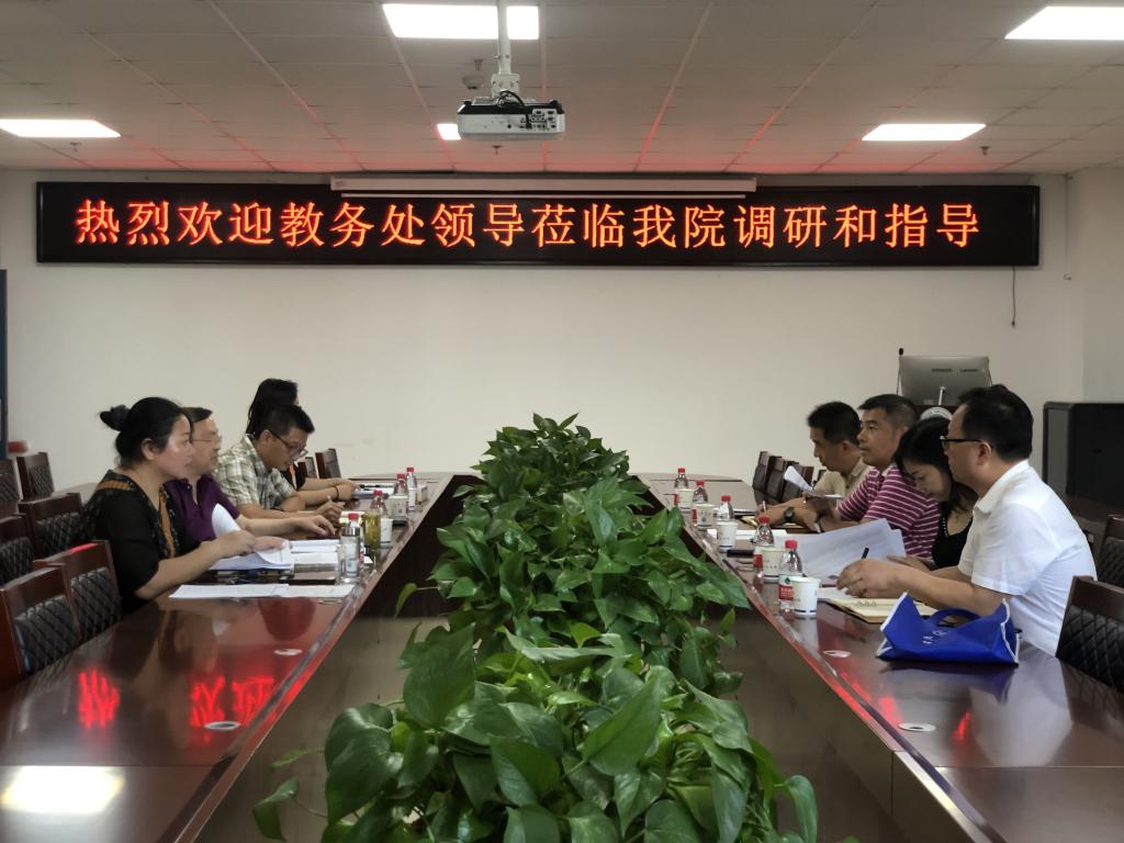(通讯员 彭蓉/任玉婷) 9月14日上午,教务处处长许锋、副处长张涛、以及相关负责人员一行4人来欧博abg官网进行招生宣传工作专题座谈调研。此次调研在505会议室开展,由学院党委书记樊帆主持,副书记王中梅、副院长陈承、院办主任彭蓉、招生专干任玉婷共同参加。