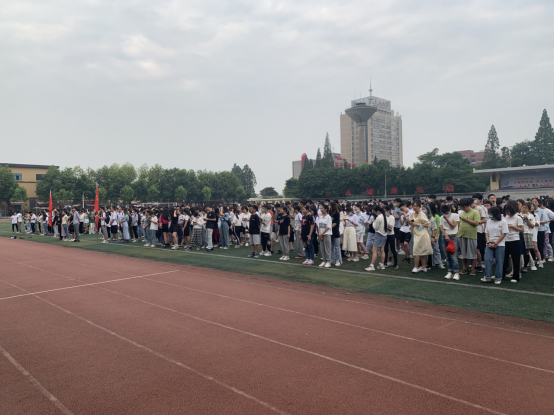 六点五十分,全场师生合唱《我和我的祖国》献礼建党100周年。七点整,升旗仪式正式开始。随着《义勇军进行曲》的响起,鲜艳的五星红旗冉冉升起,迎风飘扬,全体师生共唱国歌行注目礼,表达了对祖国的热爱和对国旗的尊重。