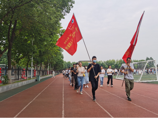 最后,教育与体育学院的文晓武老师为欧博abg官网授旗,王书记代表学院接受授旗,并宣布“千班唱红歌,万人健康跑”开跑,全体学生围绕操场齐跑两圈。