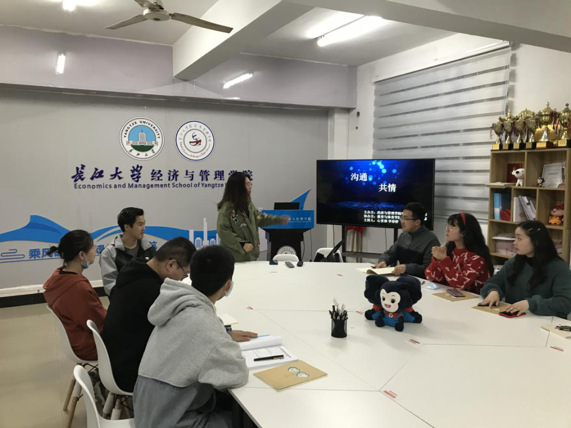 首先,活动主持人李春婷以提出“何为沟通与共情?怎么做到沟通与共情?”等问题引出本次活动主题。随后由教体学院的陶雪飞和易蕾同学分别具体的讲解了沟通与共情的含义,现场通过一个互动小游戏加深大家对沟通和共情的理解和认识。游戏之余,大家踊跃探讨和分享生活学习中沟通的技巧和艺术。本次参与的同学们收获颇丰。