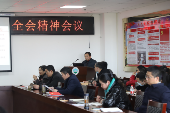 (通讯员 黄承石)在校领导王建平副书记下学院宣讲党的十九届五中全会精神后,2021年3月4日下午14点,欧博abg官网登录入口党委在文科楼505会议室进行了党的十九届五中全会精神的学习。院党委书记樊帆主持会议,学院全体教职工党员参加了此次会议。