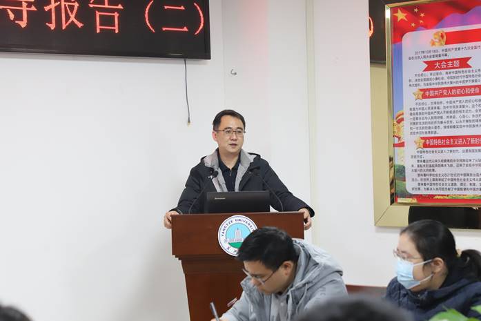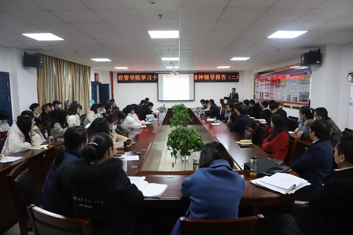 本次宣讲以《开启全面建设社会主义现代化国家新征程》为主题,系统阐述了十九届五中全会审议通过的《中共中央关于制定国民经济和社会发展第十四个五年规划和二〇三五年远景目标的建议》。学校党委副书记王建平从《建议》的起草工作和内容框架着手,围绕“新发展阶段及重要意义、有利条件和重要特征;新发展理念与新部署的指导思想、目标和重点任务;新发展格局应对新变化及战略构想和重要着力点;坚持党的全面领导,动员各方力量团结奋斗”四个方面,结合国内国际两个大局和自身理论实践思考,对全会精神进行了深入解读与剖析,重点阐述了“十四五”时期经济社会发展的重点任务,希望大家为实现中华民族的伟大复兴和学校的“双一流”建设而不断奋斗。学院党委书记樊帆总结发言,要求大家继续深入学习党的十九届五中全会精神,脚踏实地,奋发有为,为学校“双一流”建设贡献力量。
