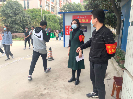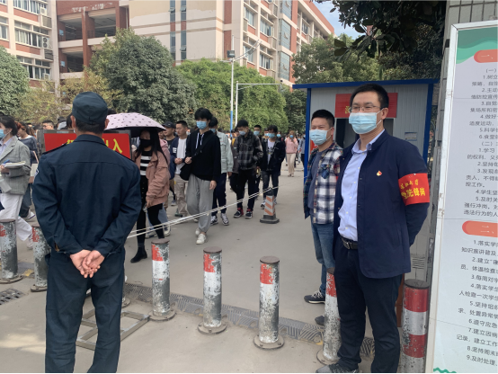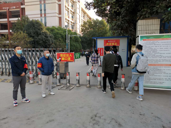 每周一到周五早上、中午和下午,欧博abg官网党员分批次在东校区大西门、小西门、东门,油苑小区等地值守。在学生上课和下课的高峰期,协助门卫开展相关工作,检查证件,提醒戴口罩,走测温通道,疏导交通,及时疏散人流量,避免大量聚集。同时,利用空隙时间对防火、防盗、防诈骗和疫情防控知识进行宣传。
