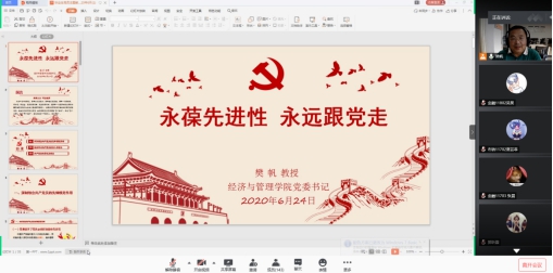 为了积极响应和落实学校组织部关于在全校开展“党课开讲啦”活动,进一步巩固拓展“不忘初心、牢记使命”主题教育成果。6月24日下午三点,欧博abg官网登录入口党委书记樊帆教授给全体学生党员讲授了以“永葆先进性,永远跟党走”为主题的线上党课。