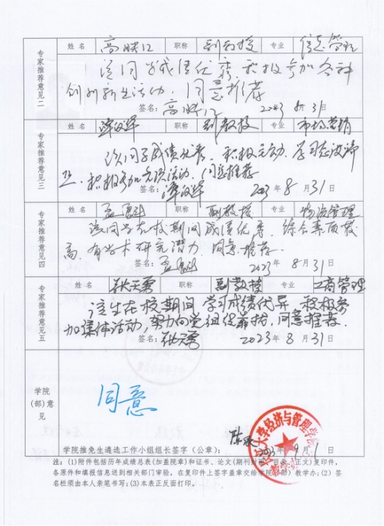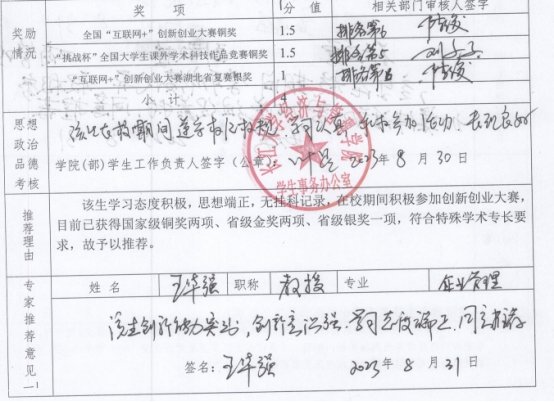 冯硕,男,学号202003175,学院信息管理与信息系统专业本科生。获得全国“互联网+”创新创业大赛铜奖 、“挑战杯”全国大学生课外学术科技作品竞赛铜奖和“互联网+”创新创业大赛湖北省复赛银奖;廖培霖,男,学号202004912,学院金融学本科生。获得第八届“互联网+”大学生创新创业国家金牌、第十三届“挑战杯”大学生创业计划竞赛国家银奖和第八届“互联网+”大学生创新创业省银奖。根据《欧博abg官网登录入口推荐优秀应届本科毕业生免试攻读硕士学位研究生管理办法(试行)》(长大校发 〔2020〕106号)和关于做好推荐2024届优秀本科毕业生免试攻读硕士学位研究生工作的通知》等文件精神和通知要求,9月1日13:00-13:30在文科大楼417开展特殊学术专长答辩会,经答辩决定同意冯硕和廖培霖进行2024届研究生推免申请(不是正式推免)。 现通过欧博abg官网登录入口网站主页予以公示,公示日期为2023年9月1日至2023年9月3日,如有异议,请于2023年9月3日前与学院教学办联系,电话:0716-8060985。先将材料公示如下: