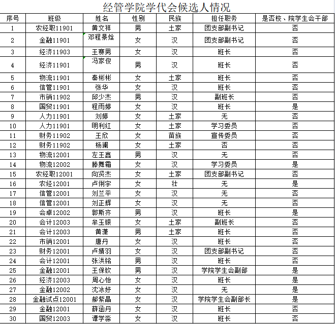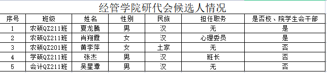 学院将于2022年6月上旬召开学生代表大会、研究生代表大会,根据学校工作安排,依据《中华全国学生联合会章程》、《湖北省学生联合会章程》、《欧博abg官网登录入口学生会章程》、《欧博abg官网登录入口研究生会章程》,现将经管学院2022年学生代表大会、研究生代表大会候选人情况进行公示。公示期为2022年5月30日至2022年6月1日,公示期内如对候选人情况有异议,请联系经管学院团委杨老师反映情况(办公电话:0716-8060920)。
