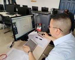 答辩当天,29个答辩组长均统一安排在学院5个实验室,根据疫情防控要求,做好测温和消毒准备工作,并保持适当的距离。答辩组长负责组织本小组的答辩工作并做好录屏。老师们开玩笑说,“感觉自己有点当主播的范儿。”由于经管学院参加答辩的学生较多,为了减少学生等待时间并尽快完成答辩,流程设计得十分紧凑,答辩评委全天候坚守电脑前,认真听取学生汇报,提问和给出修改建议。教学办工作人员负责为评委老师们做好后勤服务,订盒饭,倒茶水,解决技术问题。一天下来,评委老师们坐得腰酸腿痛,但大家都毫无怨言。商贸系李诗珍教授说,“在线答辩的确比以往线下答辩要累,但看到同学们克服疫情影响,从毕业论文撰写和答辩中得到满满的收获,感到无比欣慰,根本不觉得累了。”