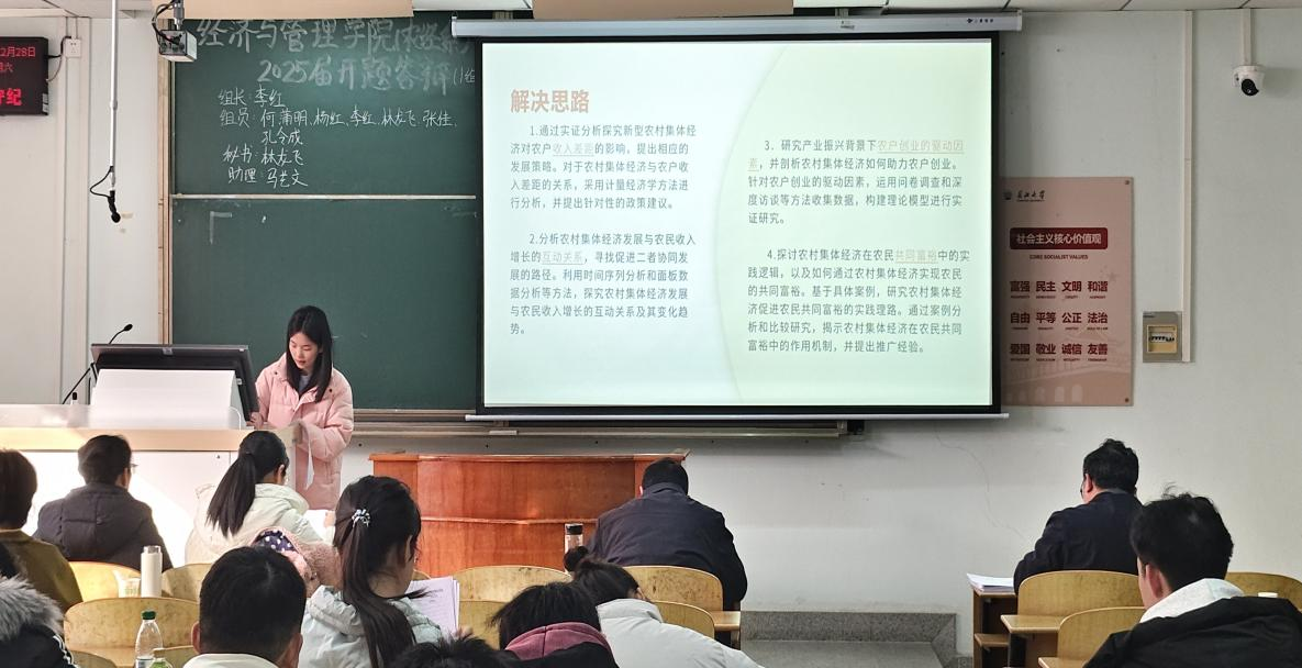 为确保毕业论文质量,保证论文答辩工作有序展开,欧博abg官网登录入口按照本科生教学培养计划要求和学校关于做好本科毕业论文有关文件精神,制定了《欧博abg官网登录入口2025届本科毕业论文(设计)工作安排》。本次答辩工作从十月份开始计划,前期逐步完成指导老师分配、论文选题和开题报告准备等工作,在此基础上,按会计系、农经系、经济系、管理系四个系分为19个答辩组,以小组的形式依次展开答辩活动。