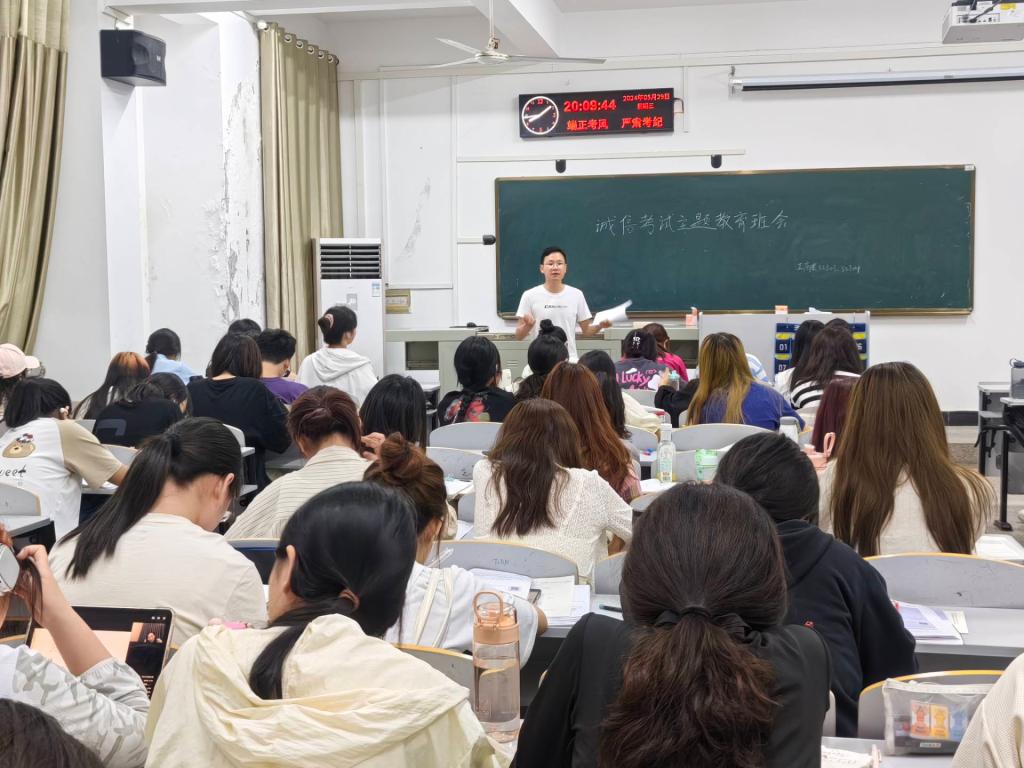 (通讯员 吴蕾蕾)全国大学英语四、六级考试和春季学期期末考试临近,为进一步加强学院学风建设,营造诚信考试的良好学风,学院于5月30-31日组织全体本科生和研究生召开了考风考纪专题教育班会。