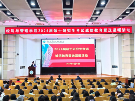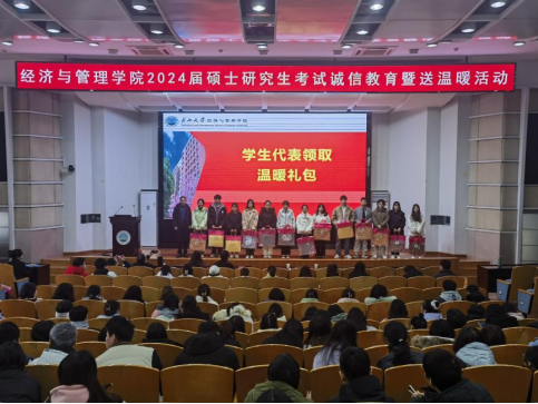 (通讯员 孟宪锦弘)不畏湍流几许难,只管行舟望青山。在全国硕士研究生招生考试来临之际,为帮助考研学子坚定必胜信心、缓解备考压力,2023年12月12日上午,经济与管理学院2024届硕士研究生考试诚信教育暨送温暖活动在12教405报告举行。学院党委副书记平先锋、辅导员叶星、娄君庭、贺雄、方含之和全体考研学子参加活动。