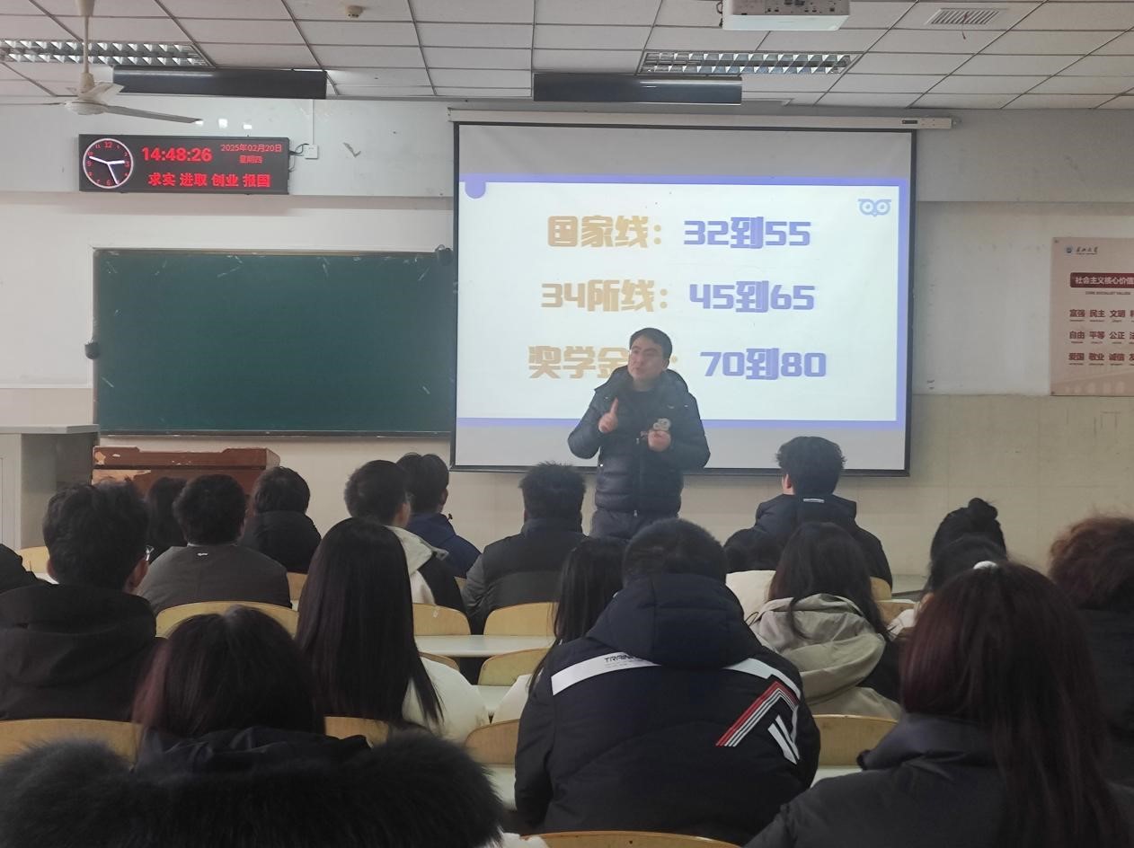 主讲人何凯文老师登台后,首先深入阐释了经管类专业考研的重大意义。他指出,在公务员及事业编、教育行业、金融财经、读博深造等方面考研都有着深远影响,为同学们勾勒出了广阔的未来发展蓝图。同时,何老师推荐了一些性价比较高的考研院校,让同学们能够依据自身情况,精准选择更适合自己的学校。