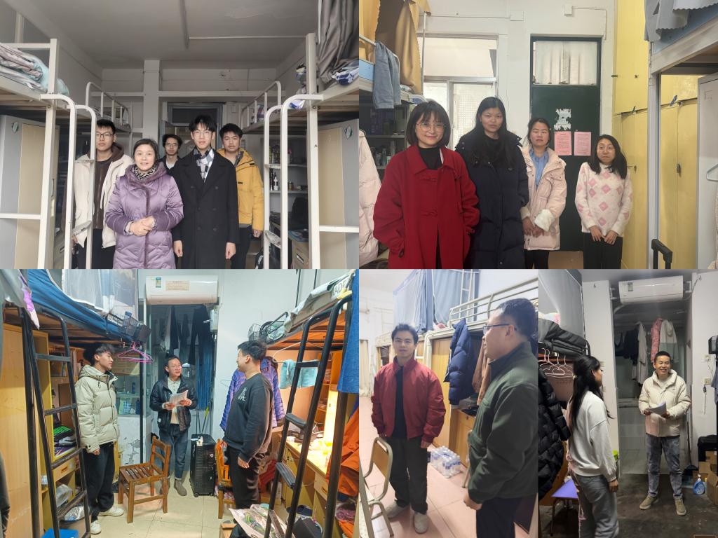 新春第一面,走进宿舍润心田。学院领导、老师、辅导员分组走访欧博abg官网学生宿舍,与各专业、各年级学生亲切交谈,提醒学生要增强安全意识,注意用水用电安全,严格遵守校规校纪,做好寝室文化建设,养成良好的生活习惯,同时及时调整心态以及作息习惯,尽快适应新学期学习生活。