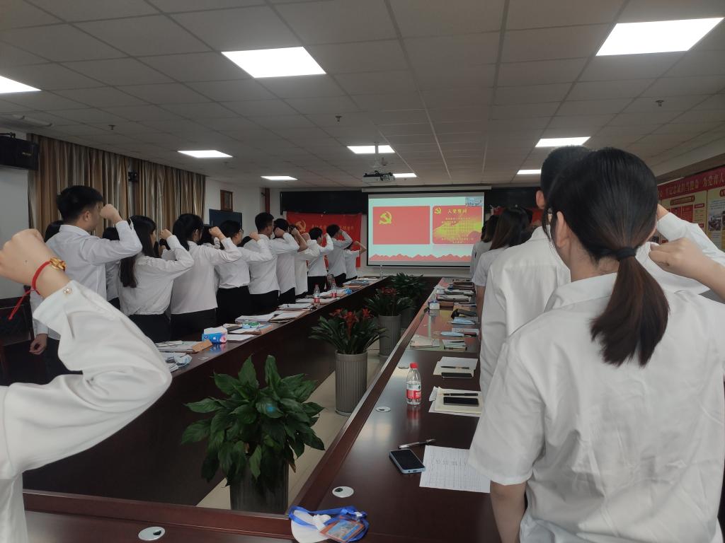 会议伊始,由主持人张华介绍会议流程,组织委员强调大会纪律。会上,王文杰等18位预备党员分别就自己预备期间内个人的思想、学习、生活动态进行汇报,经过各位党员同志的批评指正后,进行表态。汇报完毕后,正式党员进行投票。王文杰等18位预备党员全票通过成为正式党员。在张华同志的带领下,全体党员在庄严的党旗下宣读入党誓词。