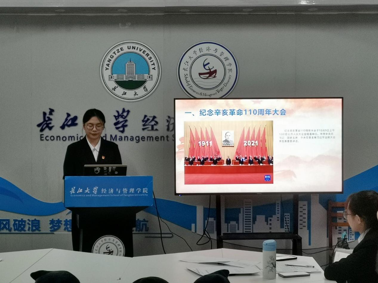 (通讯员:李丹萍)2021年11月10日下午3点,欧博abg官网登录入口管理工程系本科生党支部在新风二楼会议室召开十一月主题党日活动。此次活动的主题是“学习纪念辛亥革命110周年大会讲话”。参会人员有党支部书记李博、学生党员与预备党员。