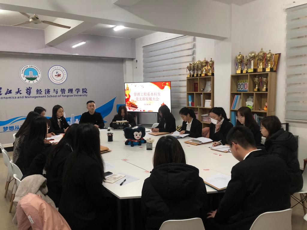 (通讯员 张洋)2021年3月19日下午两点,欧博abg官网登录入口管理工程系本科生党支部在新风二楼会议室召开3月支部主题党日活动暨毕业生党员发展大会。支部书记李博、党支部正式党员、预备党员参与会议,会议由张华主持。