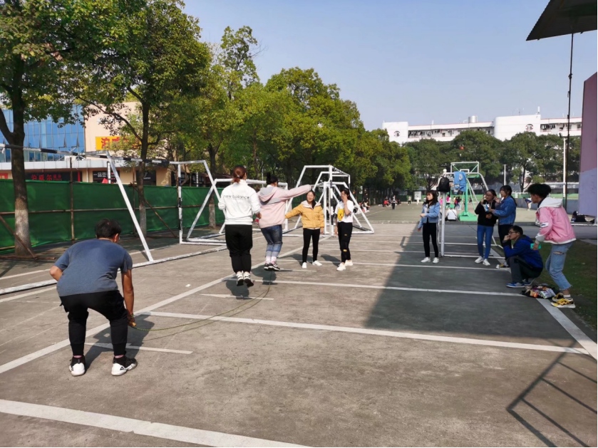 为吸引更多同学参与到体育活动中,学院还安排了跳大绳和踢毽子等体育项目。同学们在观赛、加油之余,还可以通过参加踢毽子等体育项目赢取小零食。同学们踊跃参与,现场随机组队进行PK,活动气氛热烈。