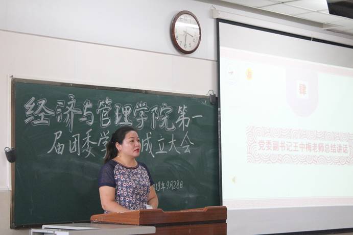 大会第四项,由院党委副书记王中梅老师进行总结讲话。她指出学生干部首要的任务依旧是学习,学生干部应当以身作则,拒绝挂科,有责任,有担当,以奉献他人为宗旨,积极服务老师与同学。