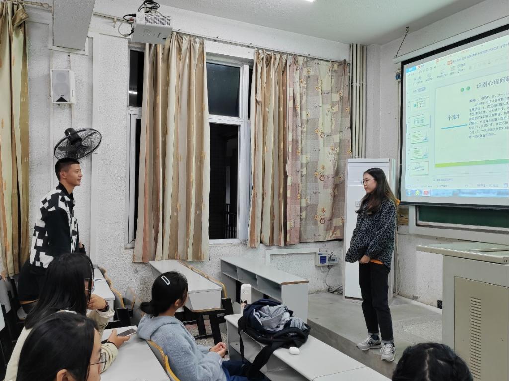 同时,方含之老师深刻阐述心理骨干的重要性及职责要求,并强调班委和寝室长要有预见性地去关注自己和周围同学们,激励大家以健康方式舒缓压力,以昂扬姿态面对学习和生活。此外,在交流互动环节,同学们就典型心理问题案例发表自己的看法,相互分享探讨了应对的方法与技巧。