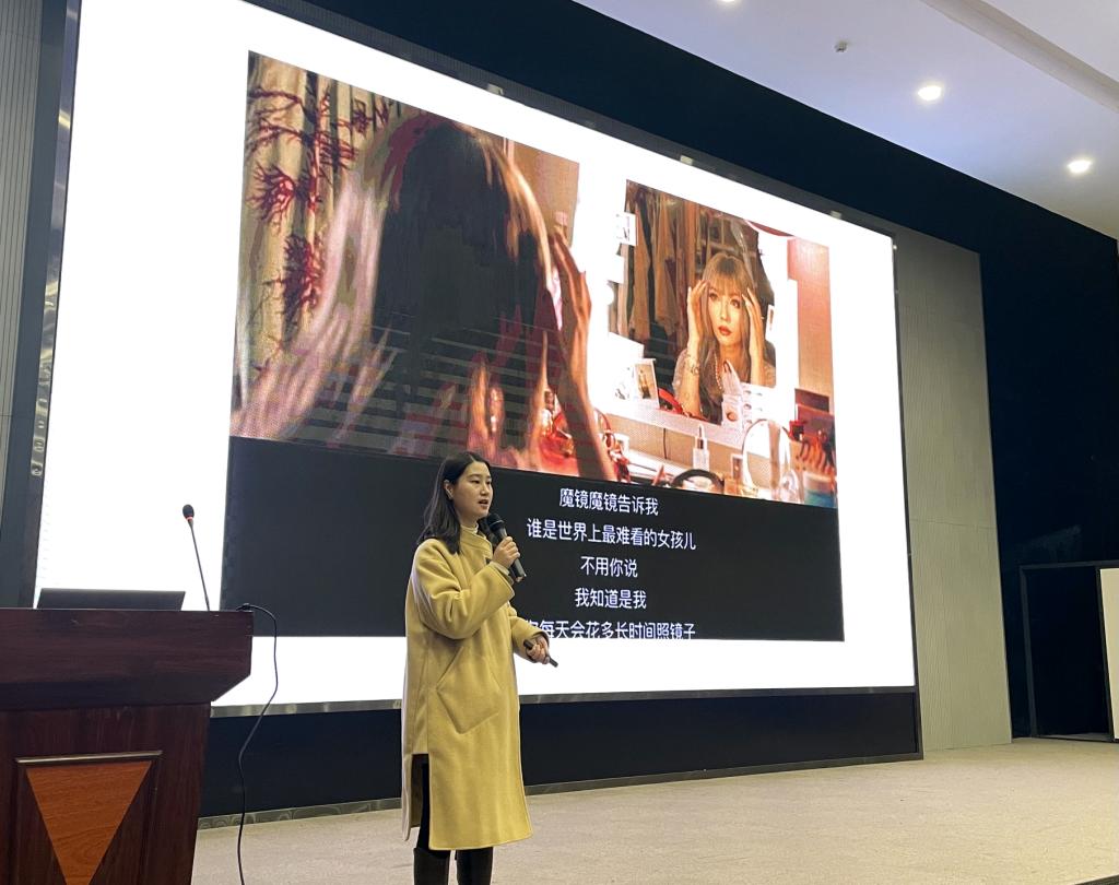 张思祺老师从三个方面展开此次讲座。第一个方面是容貌焦虑,张思祺老师首先谈到了何为容貌焦虑,根据“这是一个看脸的时代”“你长的好看,你说得对”等一系列网络流行语,告诉同学们不要被这些片面的言论洗脑,也不要过多的以容貌评价他人。