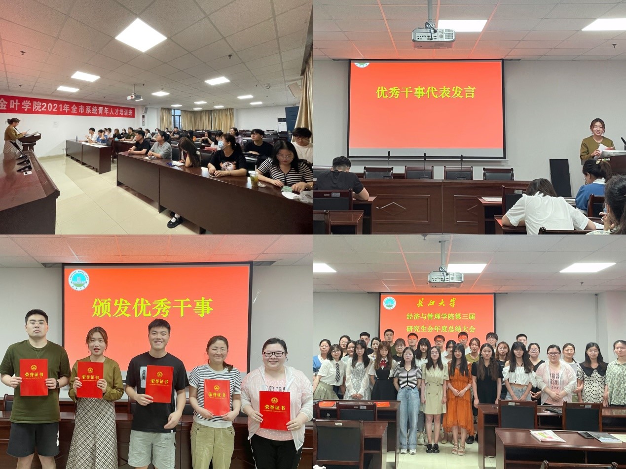 本次总结会由郑露露主持。首先,由主席团针对该学年的工作进行了总结发言,就研会成员的工作进行了简单评价,虽然有着可圈可点的工作成果,但仍有需要改进的部分,希望以后的工作研会可以再接再厉。接着由优秀干事代表潘心月同学对本学年研会的工作进行了简单汇报并发表感想。最后,对各部门新成员颁发聘书,对优秀研究生会干事颁发荣誉证书,并合影留念,至此结束。