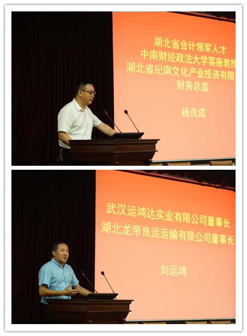 湖北省会计领军人才杨良成感叹说:“滚滚长江东逝水,经管学院也蓬勃发展,有了你们这群学弟学妹的到来,学院也定能群星荟萃,学校也定能长大长新。”此外,他祝福新生都能成为博学、睿智、创新的人才。武汉运鸿达实业有限公司董事长刘运鸿为新生送上两份礼物——杰出的校友人脉与荆州智谷创业园的支持,他希望同学们珍惜同学情,并能够坚守诚信的品质与去做力所能及的善事,也诚邀学院师生前去其公司调研。