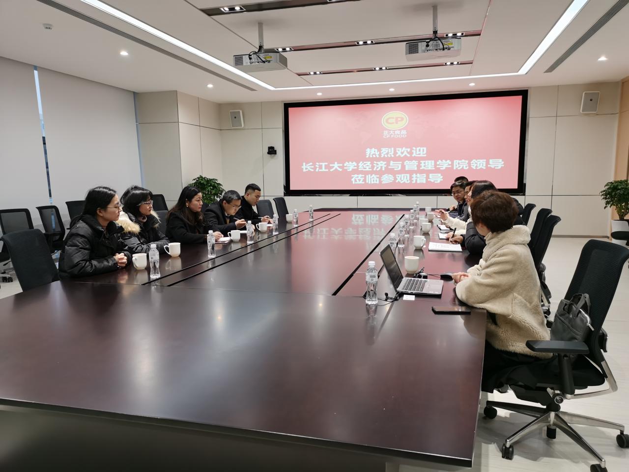 在参观襄阳正大食品有限公司时,学院一行人参观了整个食品生产链,在讲解员的引导下,对食品整个生产、包装到出厂过程进行了解。参观结束,考察团在会议室与襄阳正大人事部进行会谈,人事总监杨玲详细介绍了企业的发展及近况,物流总监张爱民就企业的运营进行了介绍,双方也就未来的合作进行深入交流。