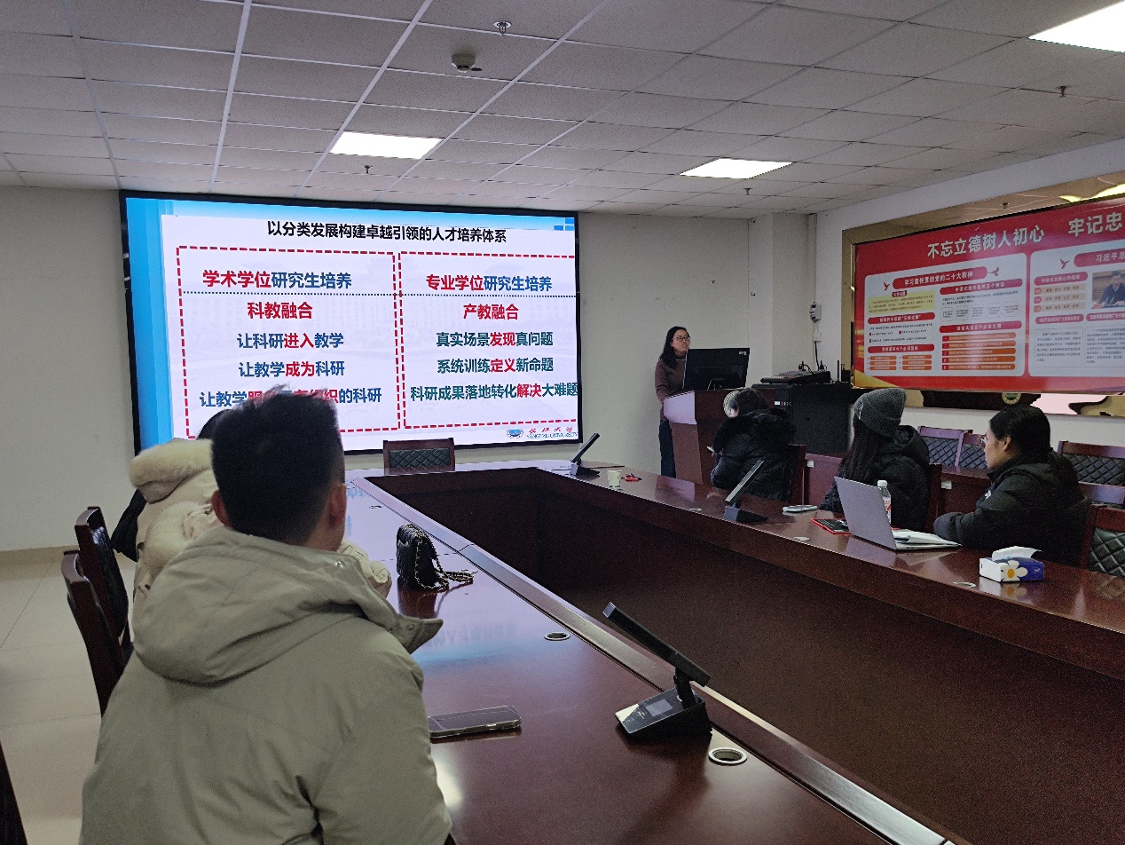 在专业学位解读环节,吴教授详细阐述其与学术型学位的差异。专业学位以专业实践为导向,紧密结合学术与职业,旨在培养适应特定行业实际工作的应用型高层次人才;而学术型学位侧重于学术研究,主要为高校和科研机构输送研究人员。她以科技小院模式为例揭示了专业学位教育的优越性,这种模式使农业硕士研究生借助科技小院通过“零距离”的科技创新与社会服务,在农村、农业产业一线开展研究,既解决了“三农”现实问题,又培养了专业性实践人才。