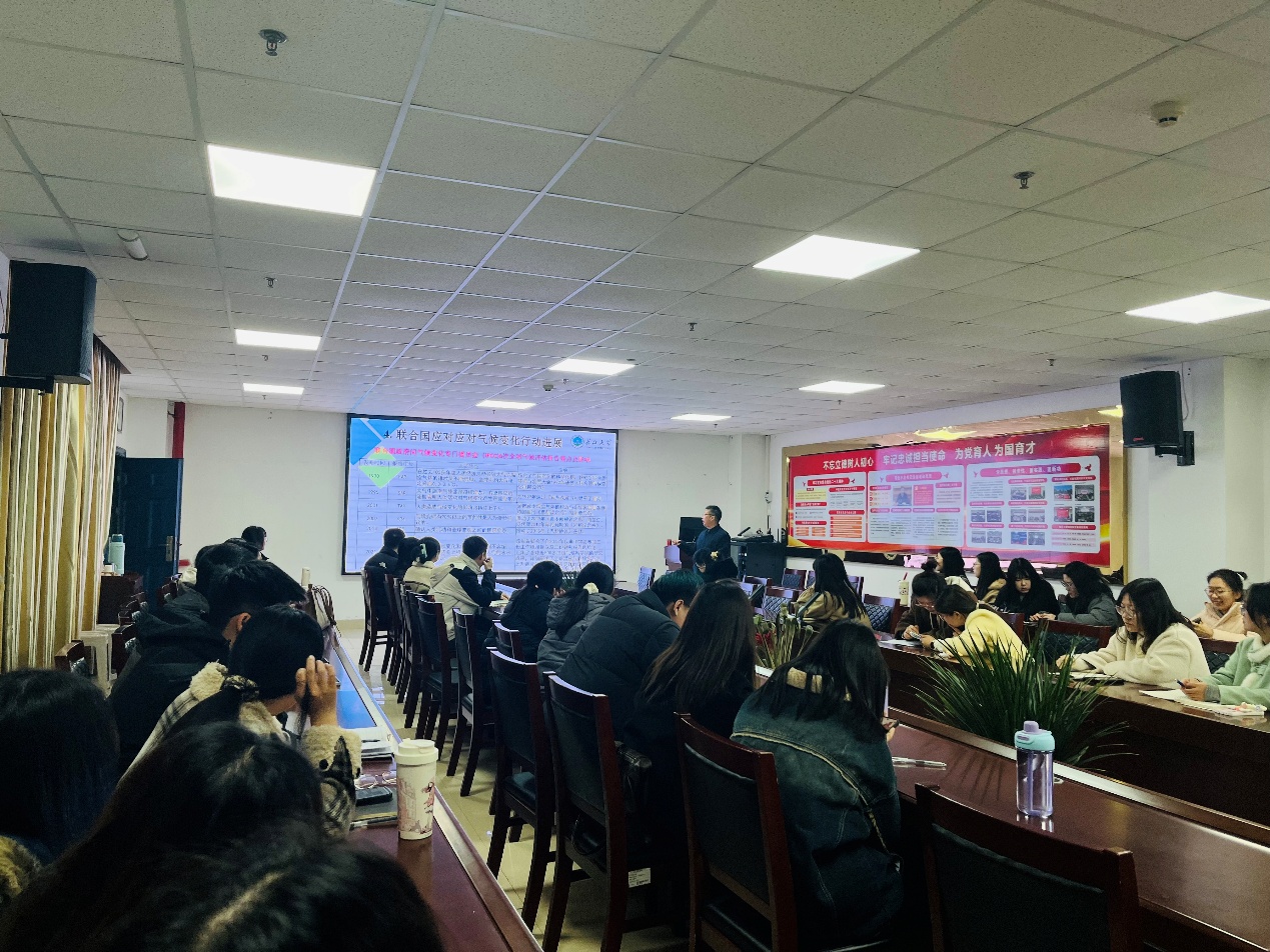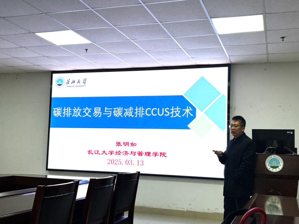 活动现场,张明如教授以“碳排放交易与碳减排 CCUS 技术”为主题,从全球气候变暖这一严峻挑战切入,生动阐述变暖危害,列举温室气体种类,介绍国际应对举措与联合国阶段性成果,着重强调碳定价在气候治理中的关键作用。讲解碳交易理论时,凭借深厚专业知识,深入浅出阐释碳排放权交易原理,全面剖析 CCUS 技术规模化发展难题,为师生呈上一场碳减排领域的知识盛宴。